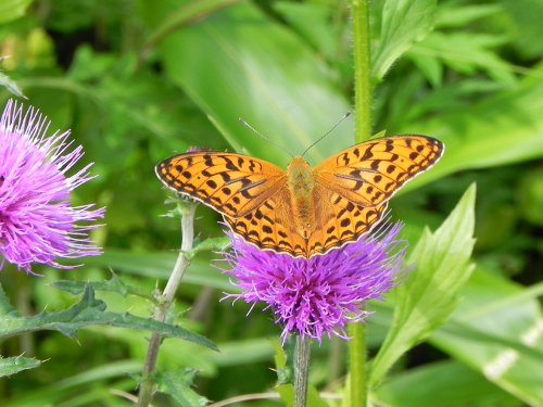 アザミにツマグロヒョウモン