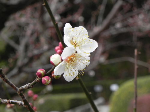 紅梅もほころび始めました