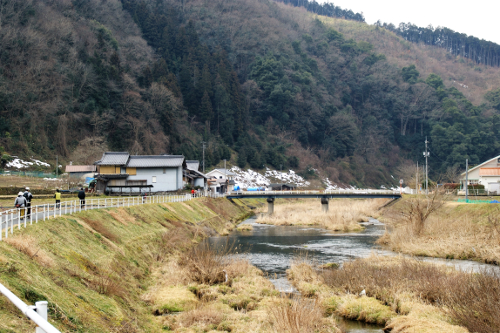 山影に根雪の残る山里へ・・・