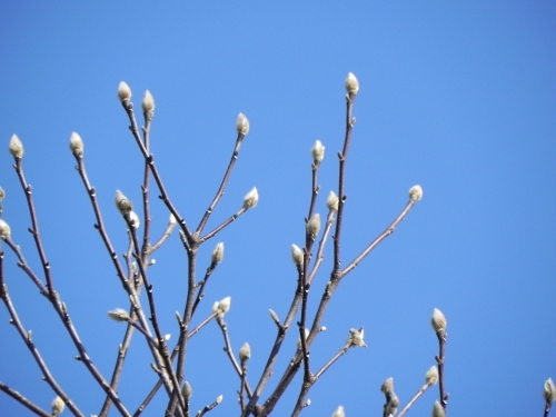 モクレンの蕾が輝いているよ