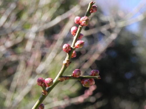 梅の蕾は まだ固い